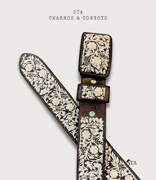 Cinto Piteado Fino Original GuĆas y Flores Resaltadas