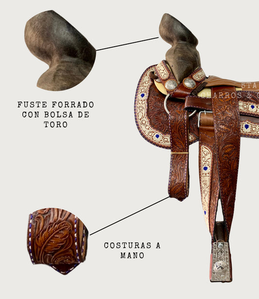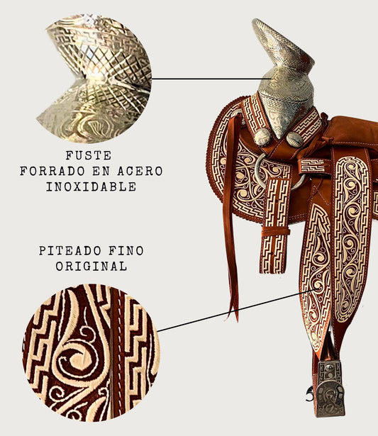 Montura Charra Piteado Original y Cincelado con Cantinas