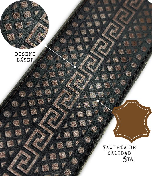 Cinto Láser Greca y Rombos con Hebilla de Acero