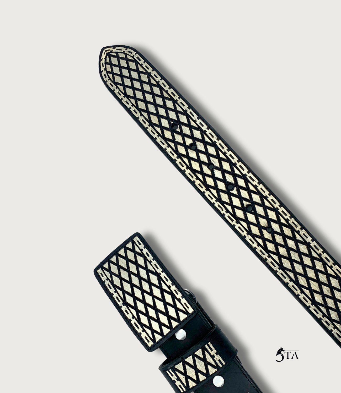 Este cinto bordado con hilo de plata es de la más alta calidad y cuenta con un diseño original. Hecho con materiales duraderos y elegantes, este cinto es perfecto para agregar un toque de estilo a cualquier outfit. Cómodo y resistente.