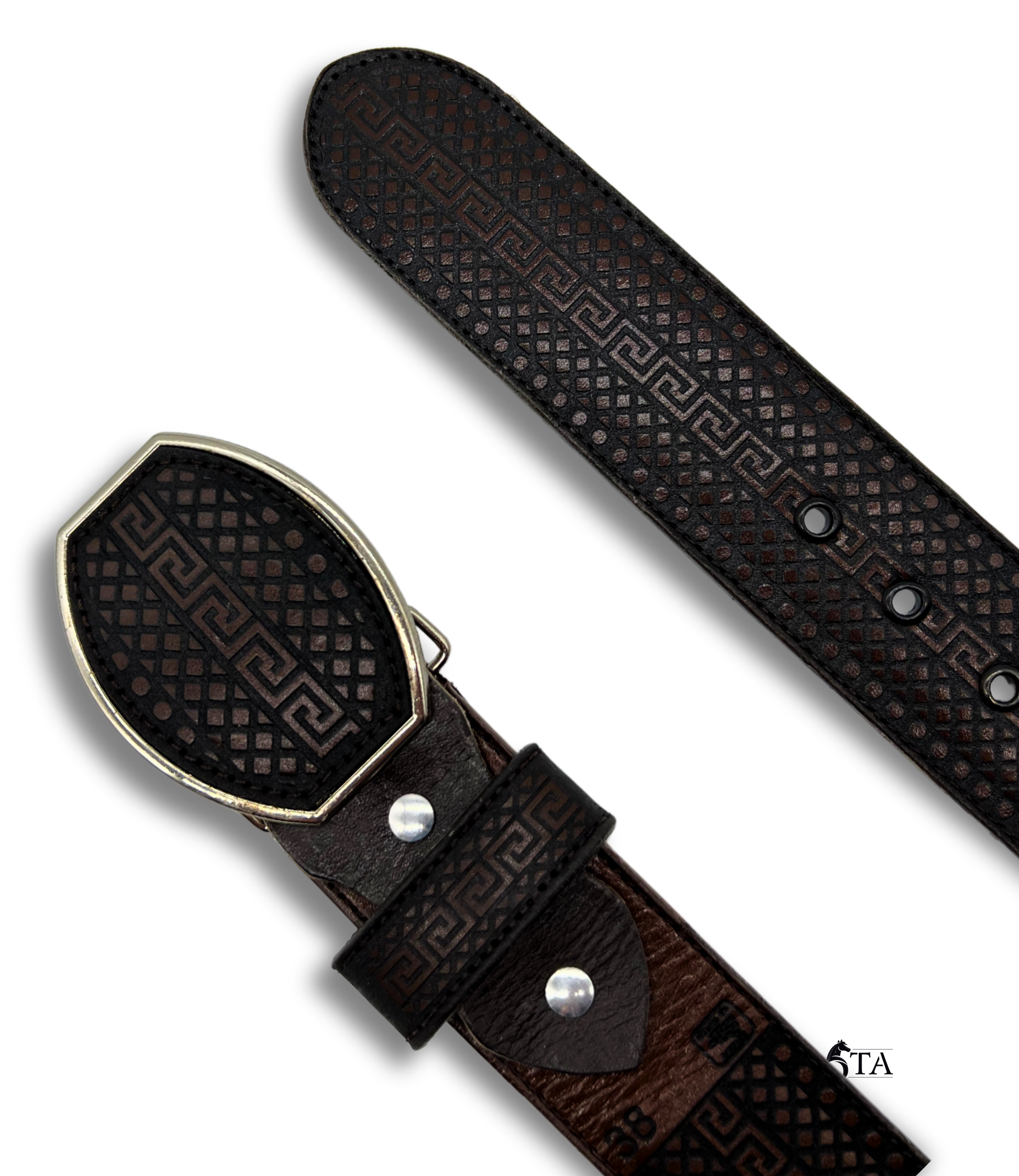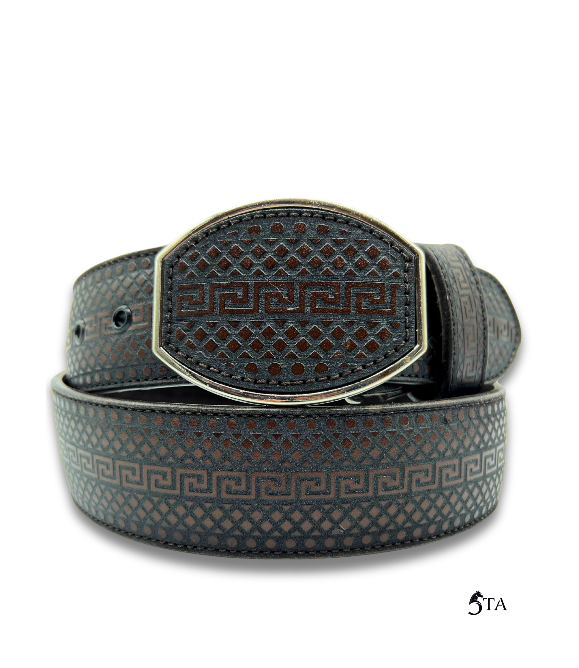 Cinto Láser Greca y Rombos con Hebilla de Acero