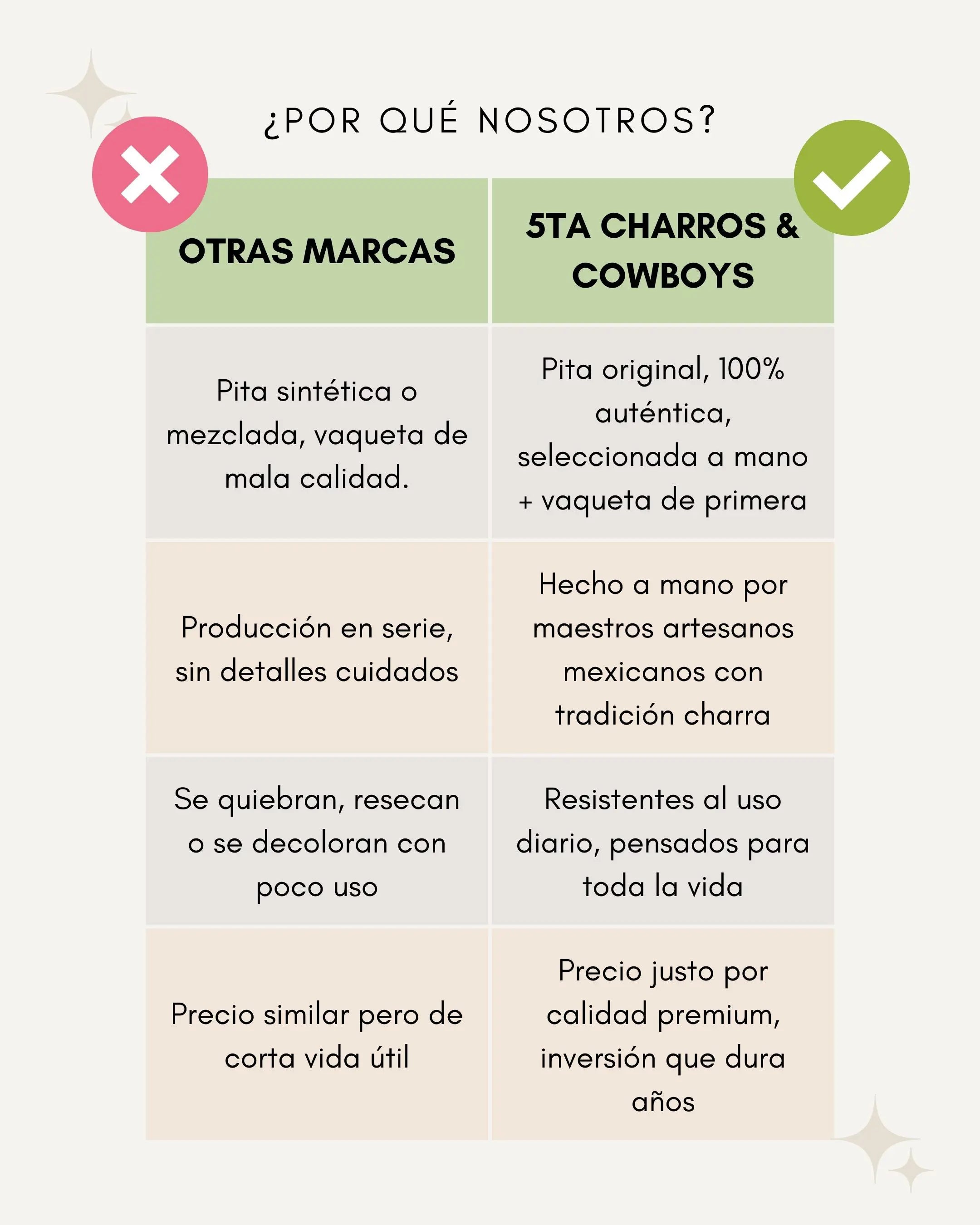 En 5TA estamos comprometidos con llevar productos artesanales, charros y vaqueros a cada rincón del mundo, siempre priorizando la calidad y atención al cliente.